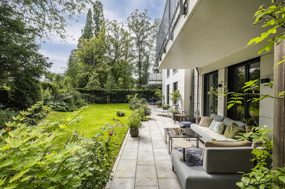 den liebevoll angelegten eigenen Garten, der durch exklusives Sondernutzungsrecht zur Wohnung gehört. Der Garten bietet