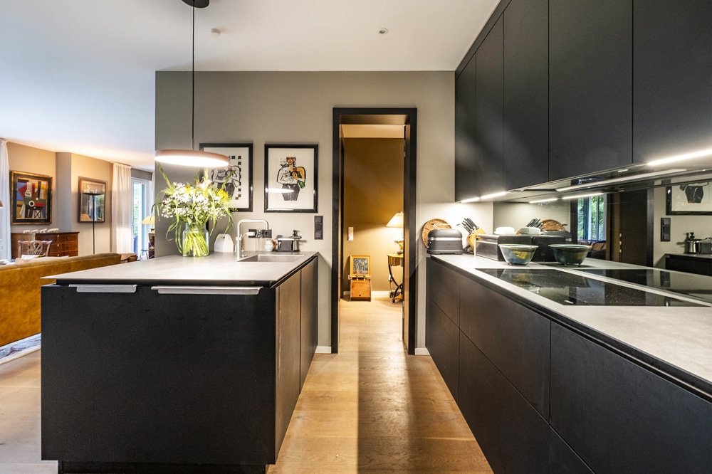 Essbereich liegt die modern elegante Küche - ein durchdachtes Kochrefugium mit modernster Technik - ausgestattet mit