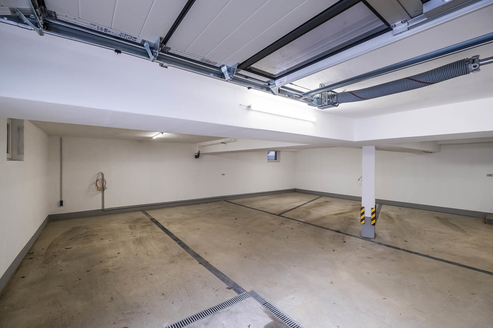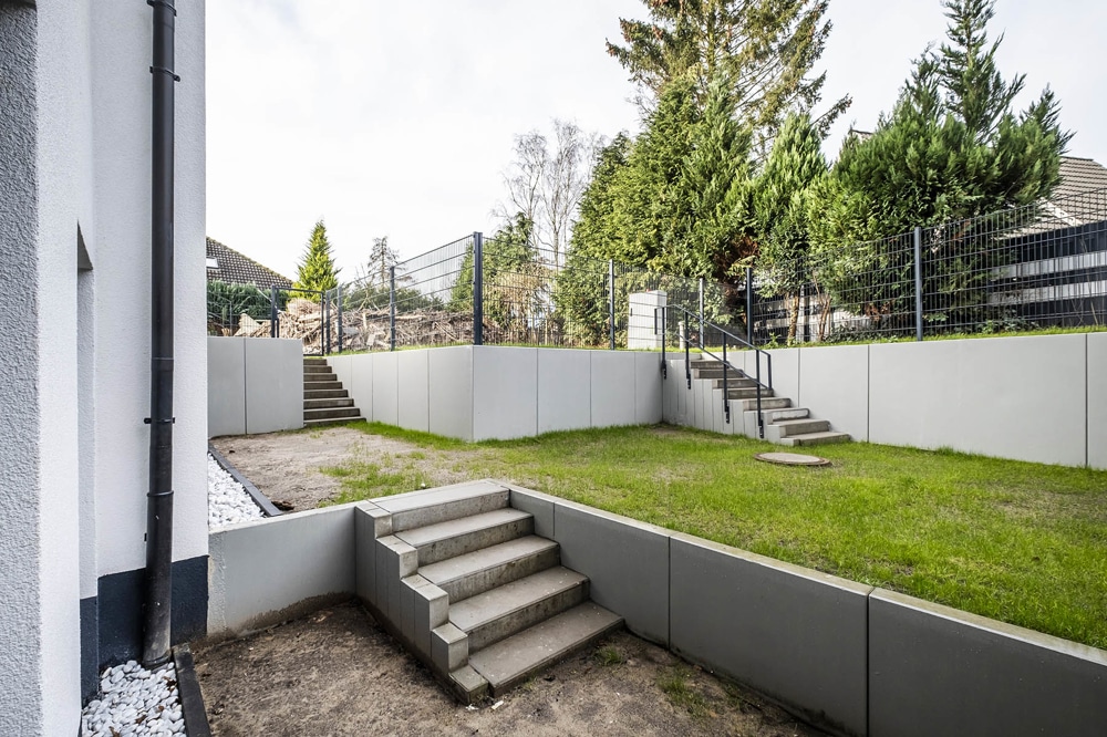 Eine Treppe führt hinunter in das Gartengeschoss mit den 3 Zimmern und einem großen Abstell-Kellerraum, sowie den Flur der auf den Austritt zur zweiten Gartenfläche führt. Im Gartengeschoss ist das Gäste-WC gelegen.