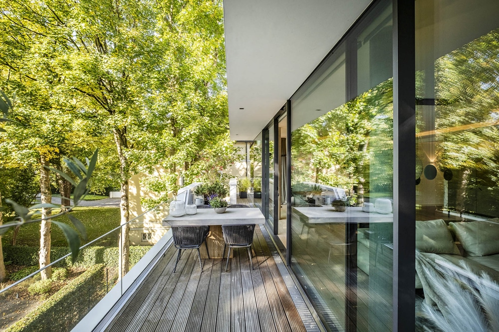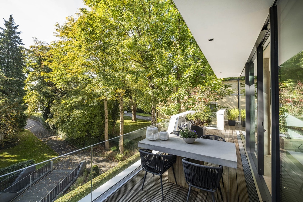 • Bodengleicher Übergang zu den Balkonen – großflächige Fensterfronten mit Schienensystem