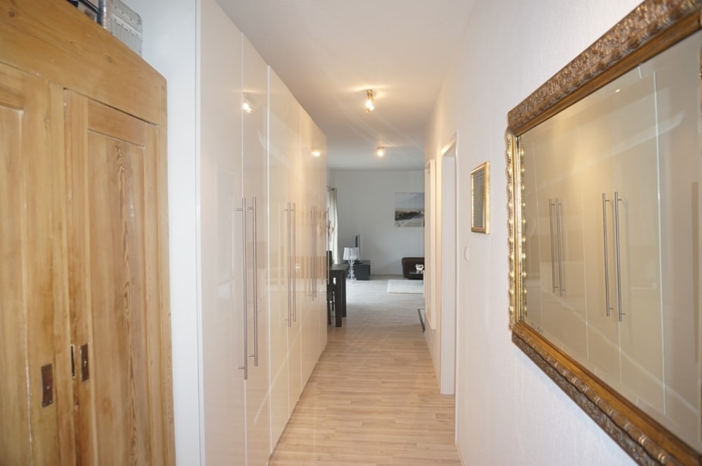 Die gesamte Wohnung wurde mit einem Plankenbodenbelag in Holzoptik augelegt.